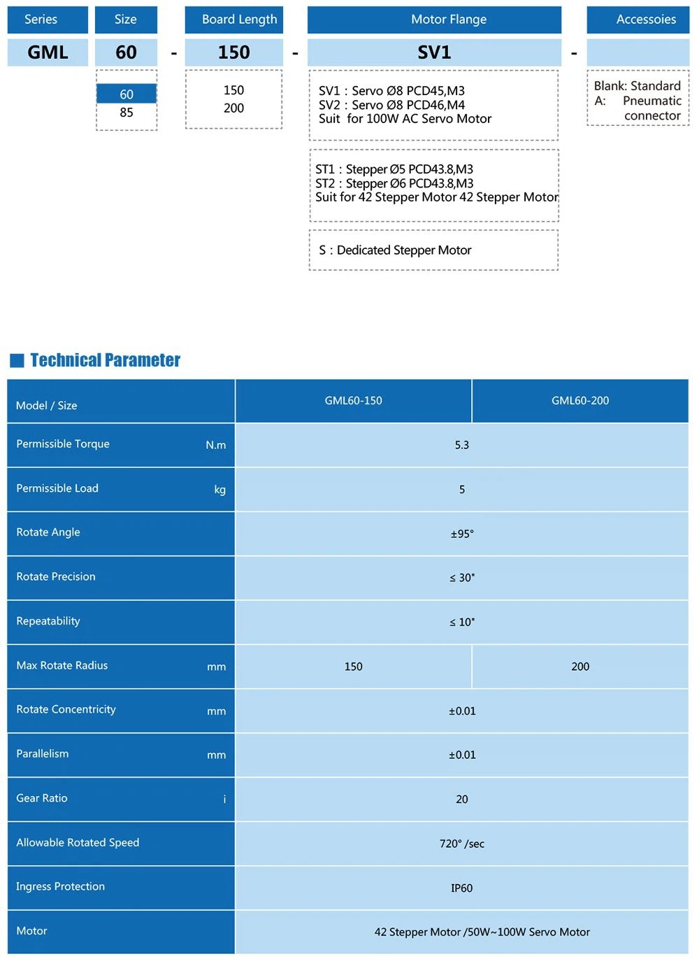 The G+ GML series precision mini rotary axis has a repeatability can arrive to ≤10 arc-sec. It adopts a miniaturized design with a small size and light weight, making it suitable for scenes with limited space.