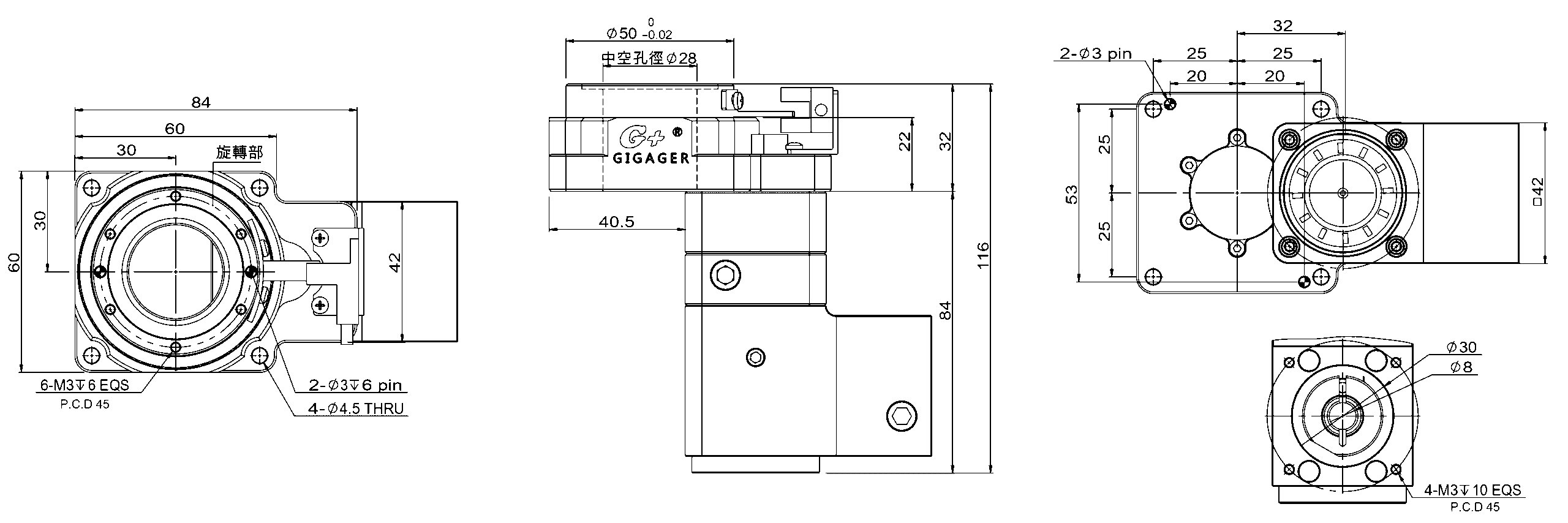 Adopting a cross roller bearing, it can be installed in horizontal, suspension and side.