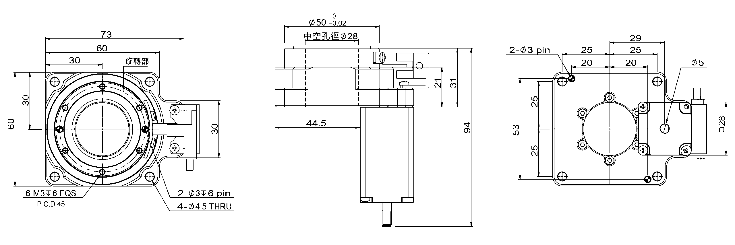 The rotary table can be directly installed with the working table robot arms.
