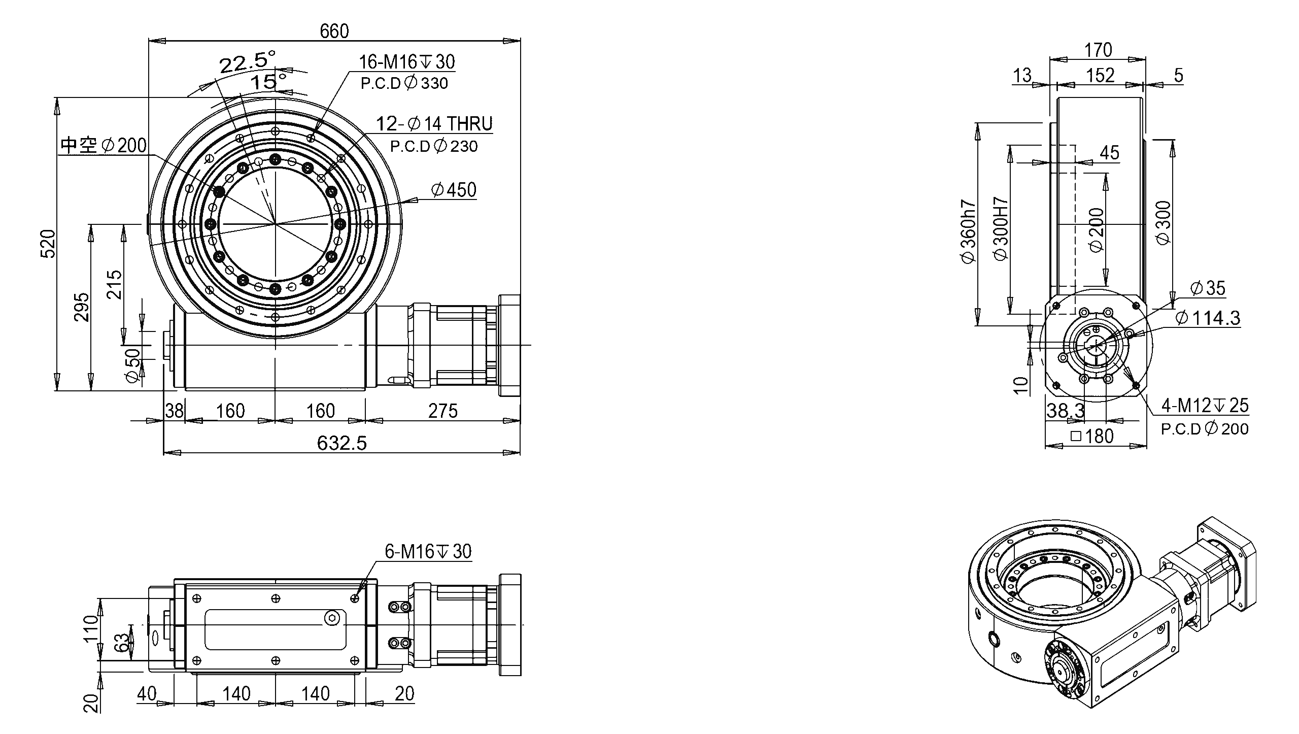 Torque transmission during rotation is achieved through internal roller bearings, resulting in a hollow indexing table with zero backlash.